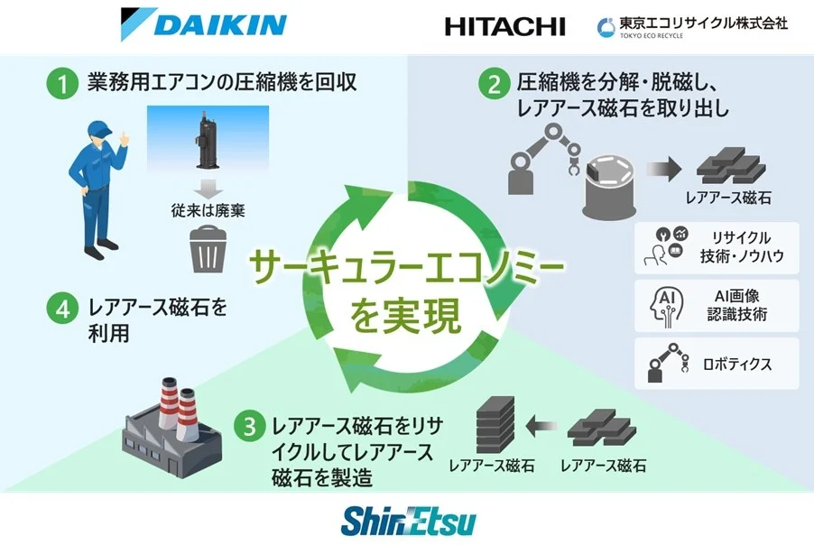 業務用エアコン圧縮機からレアアース磁石を回収・再資源化する国内初…