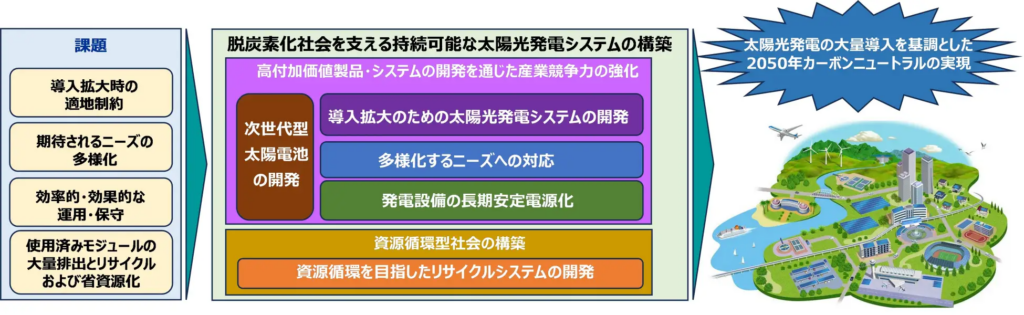 NEDOは本事業を通じて、脱炭素社会を支える持続可能な太陽光発電システムの構築を支援し、太陽光発電の大量導入を基調とした2050年カーボンニュートラル実現を目指します。
