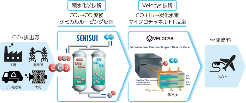 積水化学とVelocysがCO₂由来合成燃料(e-SAF)の製造技術構築に向けた戦略的提携を開始