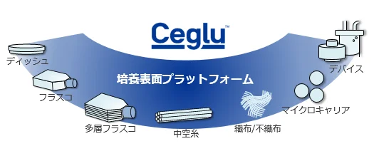 ※Ceglu™について:Cegluは細胞を意味するCellと、接着剤を意味するGlueをつなげた造語です。Cegluブランドの細胞接着ポリマーは、細胞接着性および貯蔵安定性に優れておりiPS細胞や間葉系間質細胞の培養、分化など、さまざまな用途に適しています。Cegluは化学合成された素材であり、製造過程において動物由来成分を一切使用していません。種々の培養基材にCegluをコーティングすることにより、均質な細胞培養表面環境を実現します。