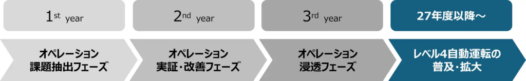 レベル4自動運転トラックの幹線輸送サービスに必要な運行オペレーションの課題を抽出するフェーズを経て、今後は、運行オペレーションの有効性を確認するための実証を重ねるとともに、そこで見つかった諸課題の改善活動に取り組んでいきます。