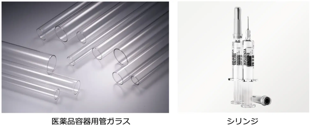 NEGは、高い化学的耐久性を持つホウケイ酸ガラス(※3)で製造された医薬品容器用管ガラスの主要サプライヤーとして、世界の医薬業界にガラス製品を供給しています。NEGの医薬品容器用管ガラスは、ヒ素などの環境負荷物質を含まない環境配慮型製品であり、バイアル・アンプル用途をはじめ、GLP-1(※4)製剤などのバイオ医薬品(※5)を中心に需要が拡大するシリンジ・カートリッジ(※6)用途にも広く使用されています。