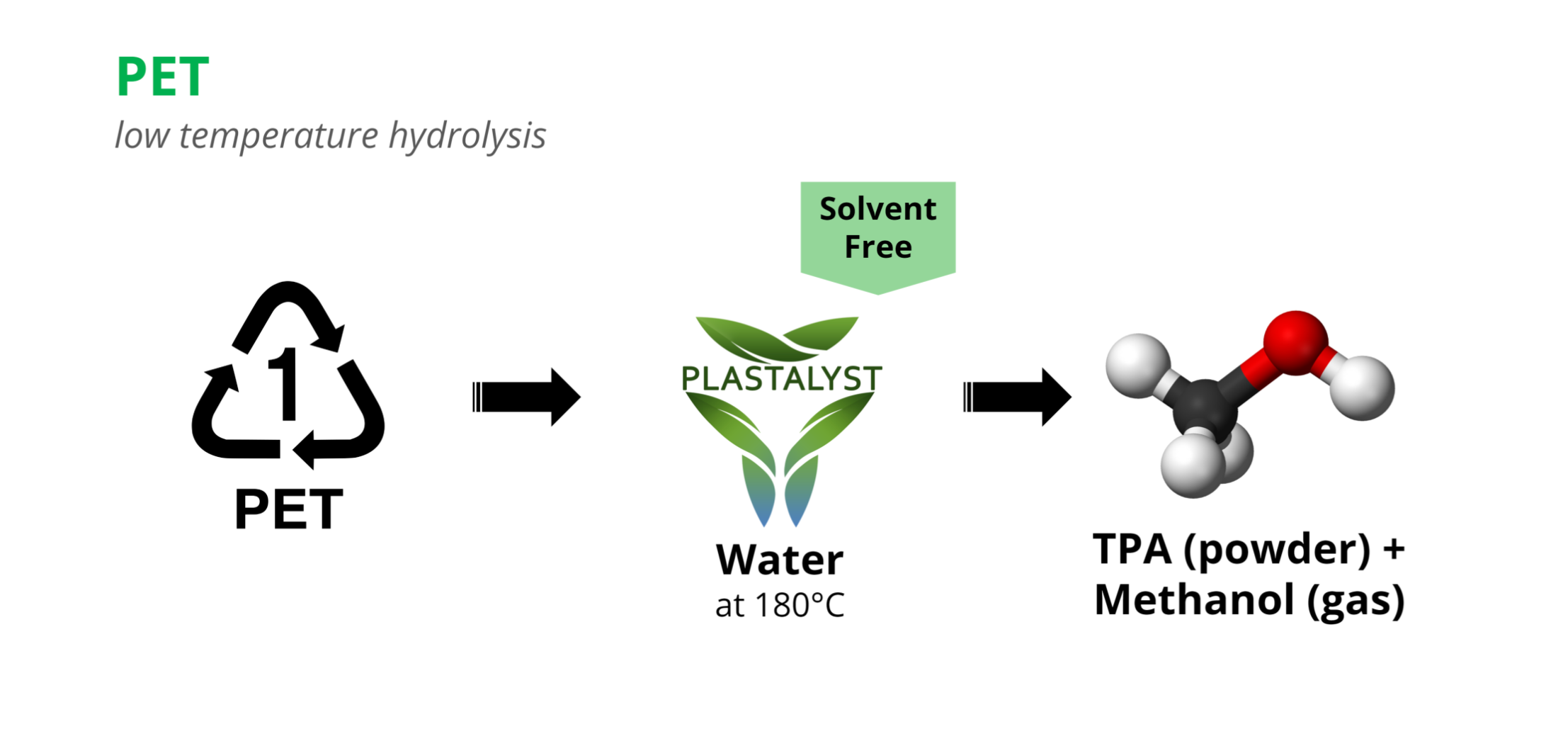 同社はPETからメタノールへの変換にも成功しており、この技術は世界で同社だけが持つという。顧客の要望に応じて、PET to PETのケミカルリサイクルと、メタノール変換の2パターンを提供できる。プロセス特許も取得済みで、他社との差別化要因となっている。