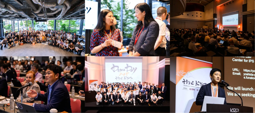 HVC KYOTOでは、採択されたプレシードを含むシードからアーリー期を中心としたスタートアップに、パートナーとの連携や成長に資する接点機会を提供しており、Demo Dayでは、日本最大級のヘルスケア領域に特化した英語によるスタートアップのビジネスピッチ、およびスタートアップと事業提携先や共同研究先、出資先を探索するパートナーとのマッチングを実施しています。Demo Day終了後も、特に京都で研究が盛んな再生医療領域のトップランナーの方々が、最新の技術動向・法規制・国家戦略などを発信するシンポジウムや、顕著な事業成長を遂げている過去採択スタートアップをお招きし、事業進捗や経験を発信するアルムナイショーケース等のポストイベントを実施し、スタートアップが知見やネットワークを深める機会を年間通して提供しています。