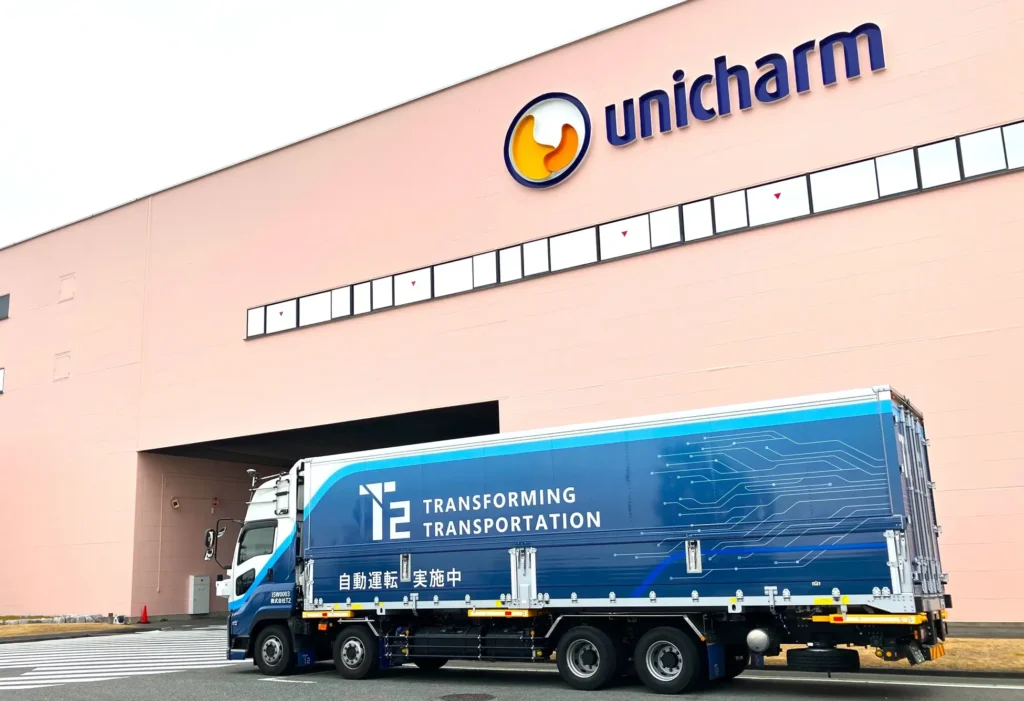 物流業界で深刻化するドライバー不足に対応する手段として注目される自動運転トラックが、実際の商品輸送に適用される段階に移ってきた。ユニ・チャームの生産子会社であるユニ・チャームプロダクツ、キユーソー流通システム(KRS)、T2の3社は2026年4月2日、自動運転トラックによる幹線輸送の実証実験を関東・関西間で開始した。