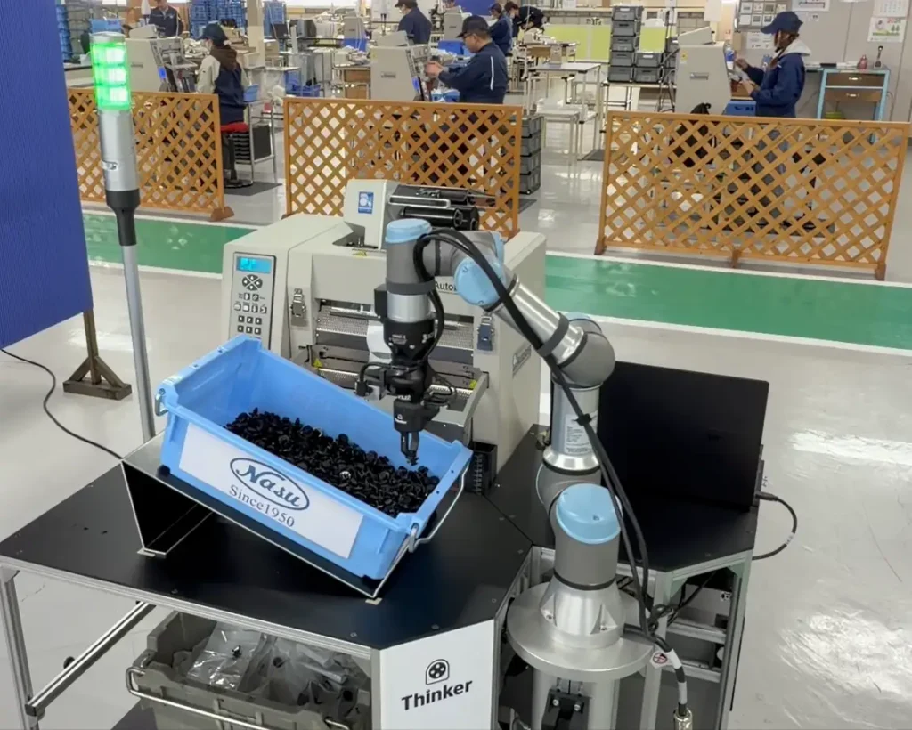 自動車部品の包装・梱包を手がける那須梱包に、バラ積みピッキングロボット「Thinker Model A」が導入された。開発元の大阪スタートアップThinkerが2026年4月13日に発表した。導入箇所は自動車用補修部品の梱包作業ラインで、これまで人手に依存していたピッキングと包装機の操作を自動化する。