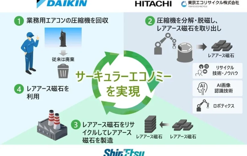 業務用エアコン圧縮機からレアアース磁石を回収・再資源化する国内初...